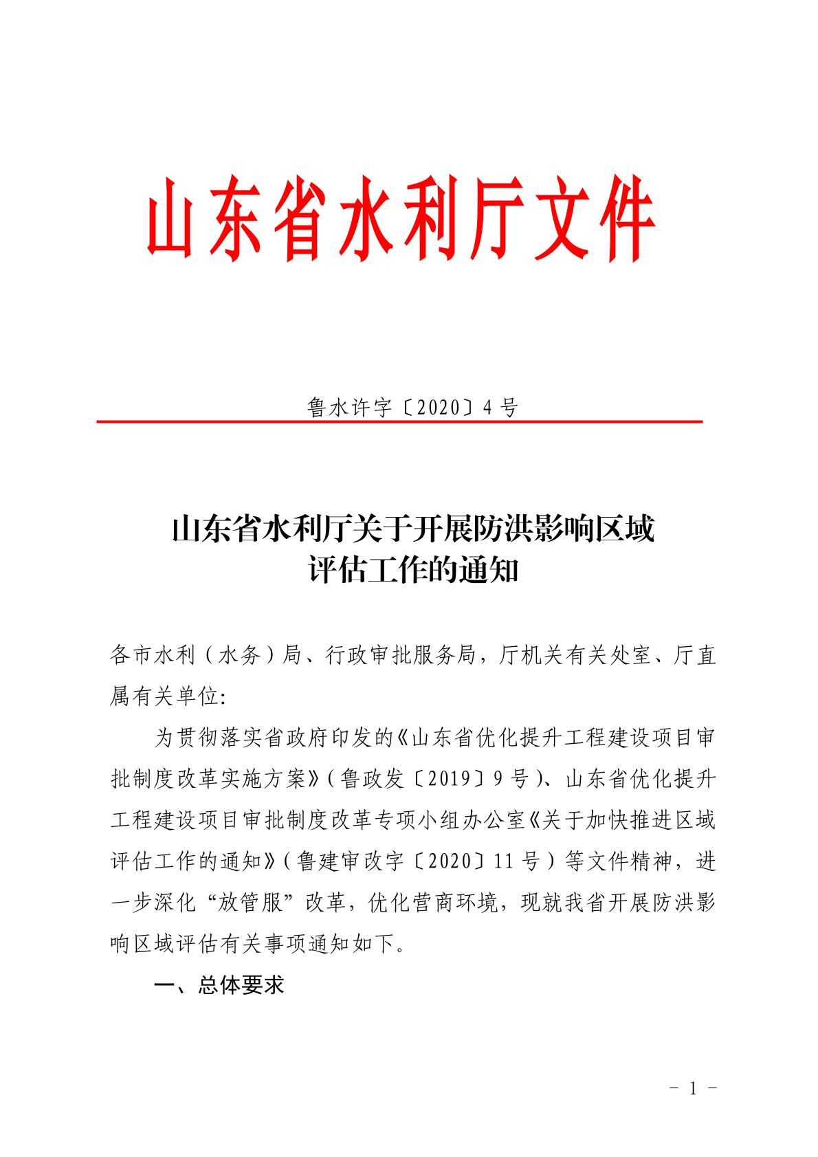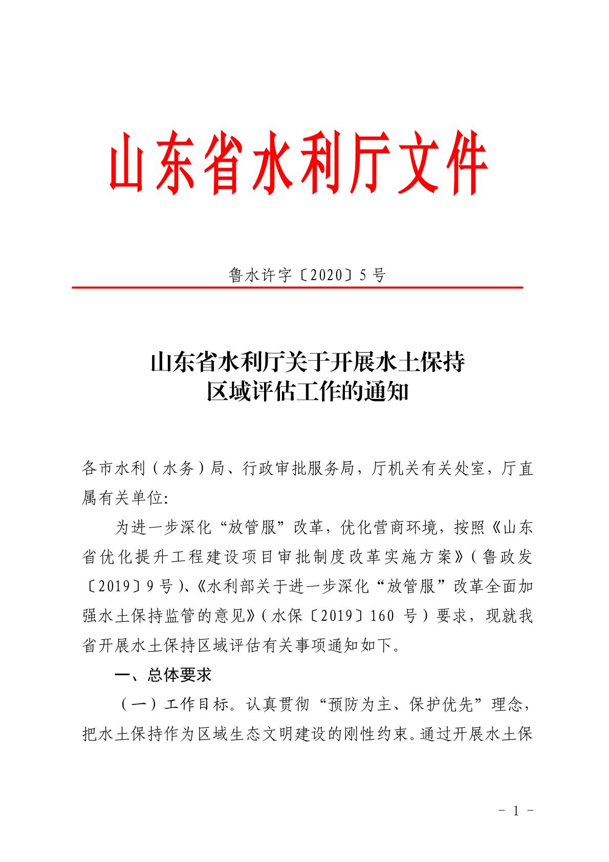 為深化“放管服”改革,優化營商環境,按照省政府印發的《山東省優化提升工程建設項目審批制度改革實施方案》(魯政發〔2019〕9號)和省優化提升工程建設項目審批制度改革專項小組辦公室《關于加快推進區域評估工作的通知》(魯建審改字〔2020〕11號)要求,近日,我廳分別印發《關于開展水土保持區域評估工作的通知》《關于開展防洪影響區域評估工作的通知》和《關于開展水資源論證區域評估工作的通知》等3個區域評估文件。